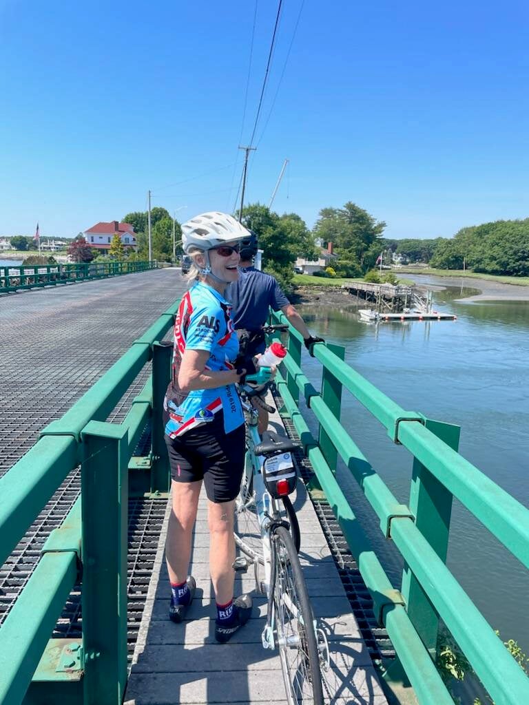 Doug took off for home when we pedaled out of York as he needed to get back for our dog Benny. Rosie and Mark were expert LG's for the entire day. Although we were on the road by 9:15am, Long Sands Beach in York was a bustle of activity. The weather was delightful and the water views were just magnificent. I was in my happy place. Our senses were filled with the sights, sounds and smells of Maine. The sounds of the lapping waves; the sun brilliantly glistening off the water; the distinctive smell of the ocean and when we turned onto Route 103 for the rolling hills, the familiar scent of pine associated with Maine. Cycling truly can be a sacred experience! And then there are the seagulls. As we crossed over the Memorial Bridge into Portsmouth and the first water stop of the day, Steve had an encounter with a seagull. He was taken in the views of the harbor, when he realized a seagull pooped right on his newly found prescription sunglasses. He was a bit incredulous as he pulled into the water stop but we all had a good laugh. The day was certainly heating up so the stop was a quick one at Pierce Island and we were back on the road heading to Rye and the NH seacoast.
